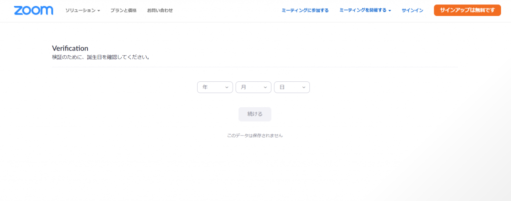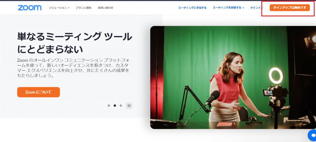 ①ZOOM公式ページにアクセスし、右上のサインアップを選択します。
