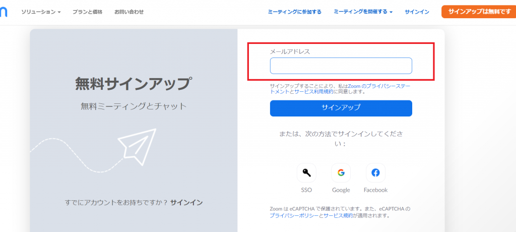 ④登録したメールアドレス宛にリンクが届くので、リンクを踏んで本登録を完了させます。その後ログインし、上部にある「ミーティングに参加する」を選択します。